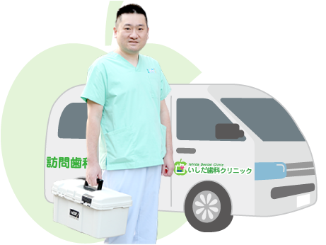 訪問歯科診療では、通院困難な方の訴えをくみとって、むし歯や歯周病などの治療や入れ歯の作製・修理、口腔ケアなどに対応しています。治療の方法は患者様の体力に合わせて無理のないように進めていきます。